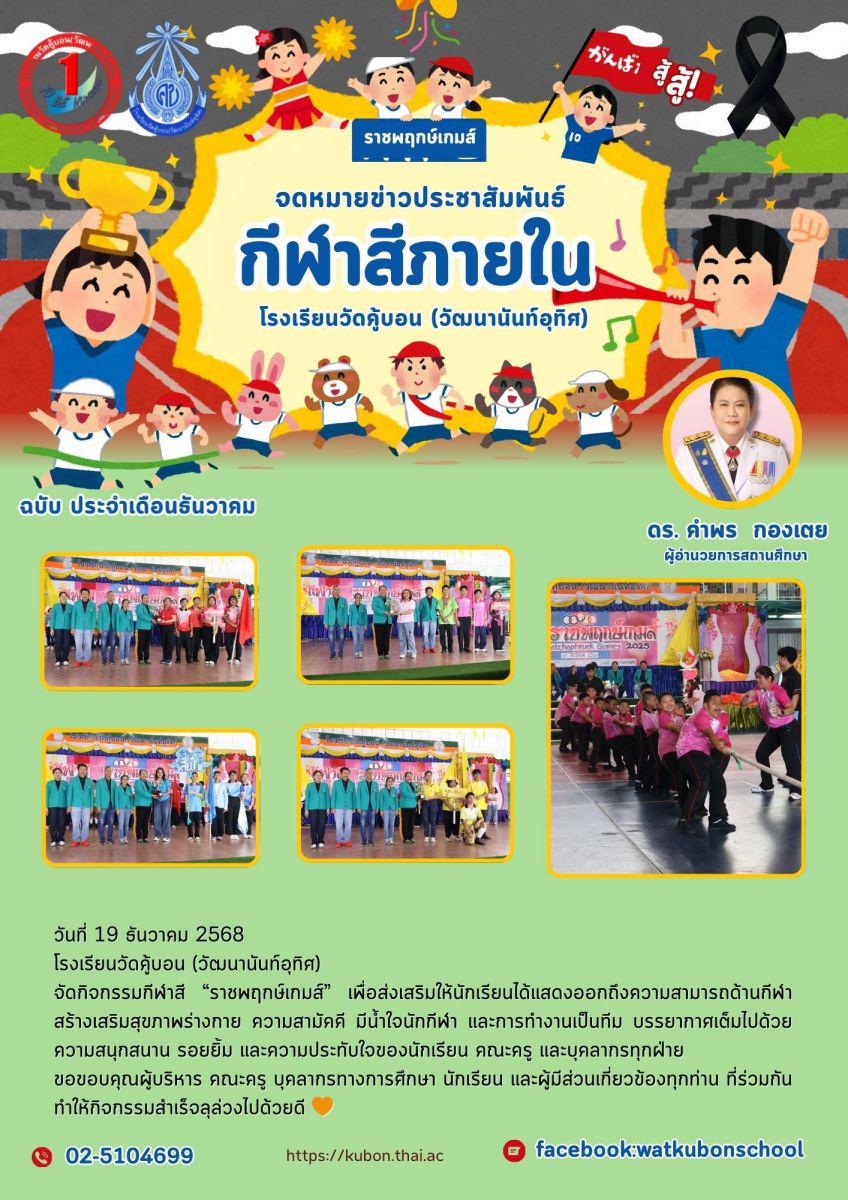 วันที่ 19 ธันวาคม 2568 โรงเรียนวัดคู้บอน (วัฒนานันท์อุทิศ) จัดกิจกรรมกีฬาสี ?ราชพฤกษ์เกมส์?
